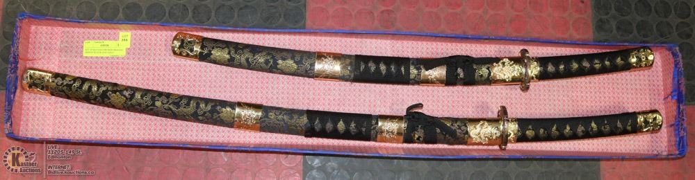 SET OF KATANA SWORDS DRAGON DESIGN BLACK AND GOLD