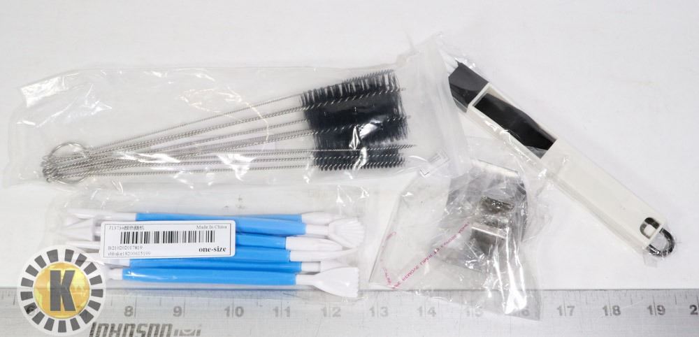 INCLUDE FOND CAKE DECORATION TOOLS, ASSORTED SIZES OF CLEANING BRUSHES, MINI BRUSH WITH MINI DUST PAN, FINGER SAVER (COVERS FINGERS WHILE CUTTING THINGS)***ITEM(S) LOCATED IN LETHBRIDGE ALBERTA