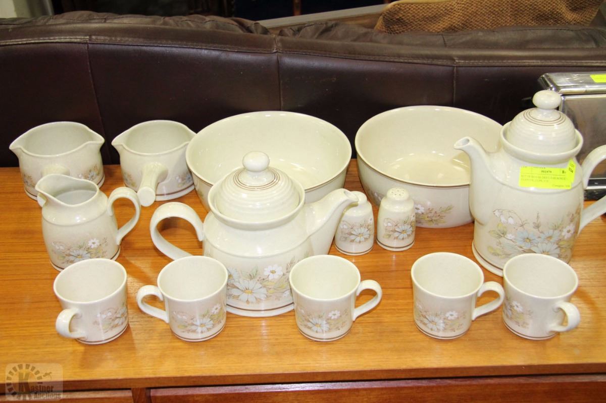 SET OF ROYAL DOULTAN BOWLS, TEAPOTS, CUPS, ETC.