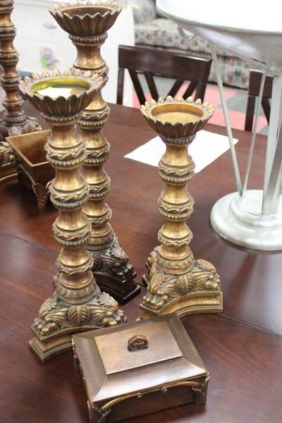 SET OF THREE CANDLE PEDESTALS, WITH JEWEL BOX