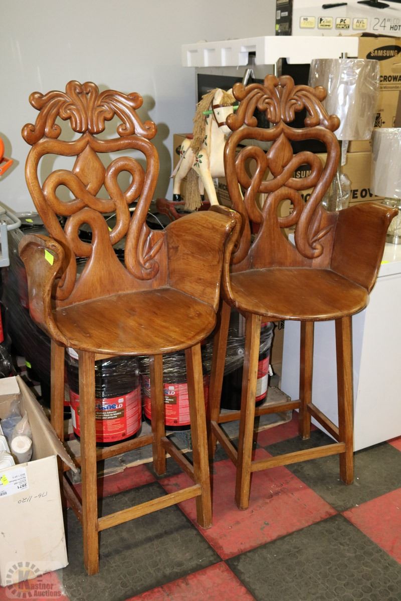 SET OF TWO CARVED ANTIQUE HIGH BACK BAR CHAIRS