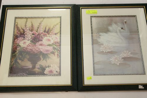 SET OF TWO SWAN AND FLOWER PICTURES