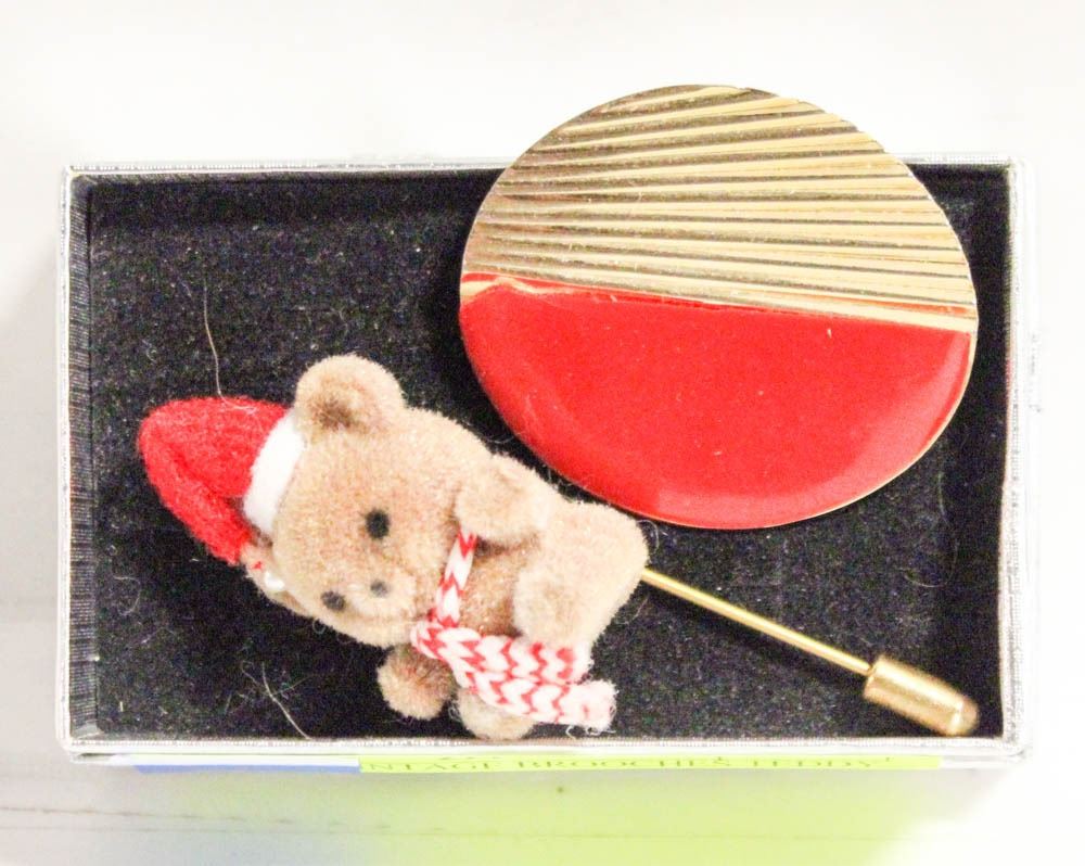 SET OF VINTAGE BROOCHES TEDDY AND RED AND