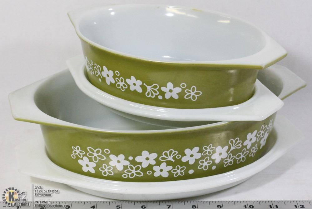 SET OF VINTAGE PYREX CASSEROLE DISHES WITH LIDS