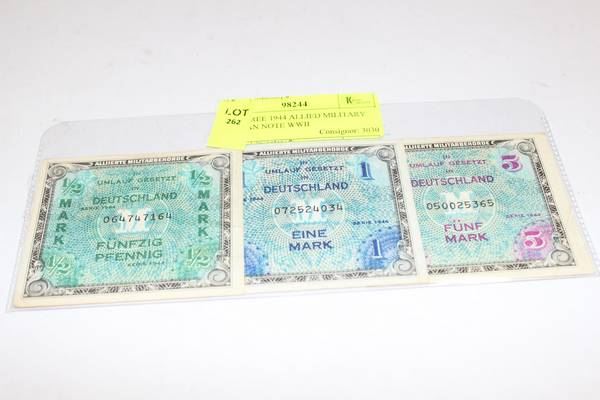 SET THREE 1944 ALLIED MILITARY GERMAN NOTE WWII