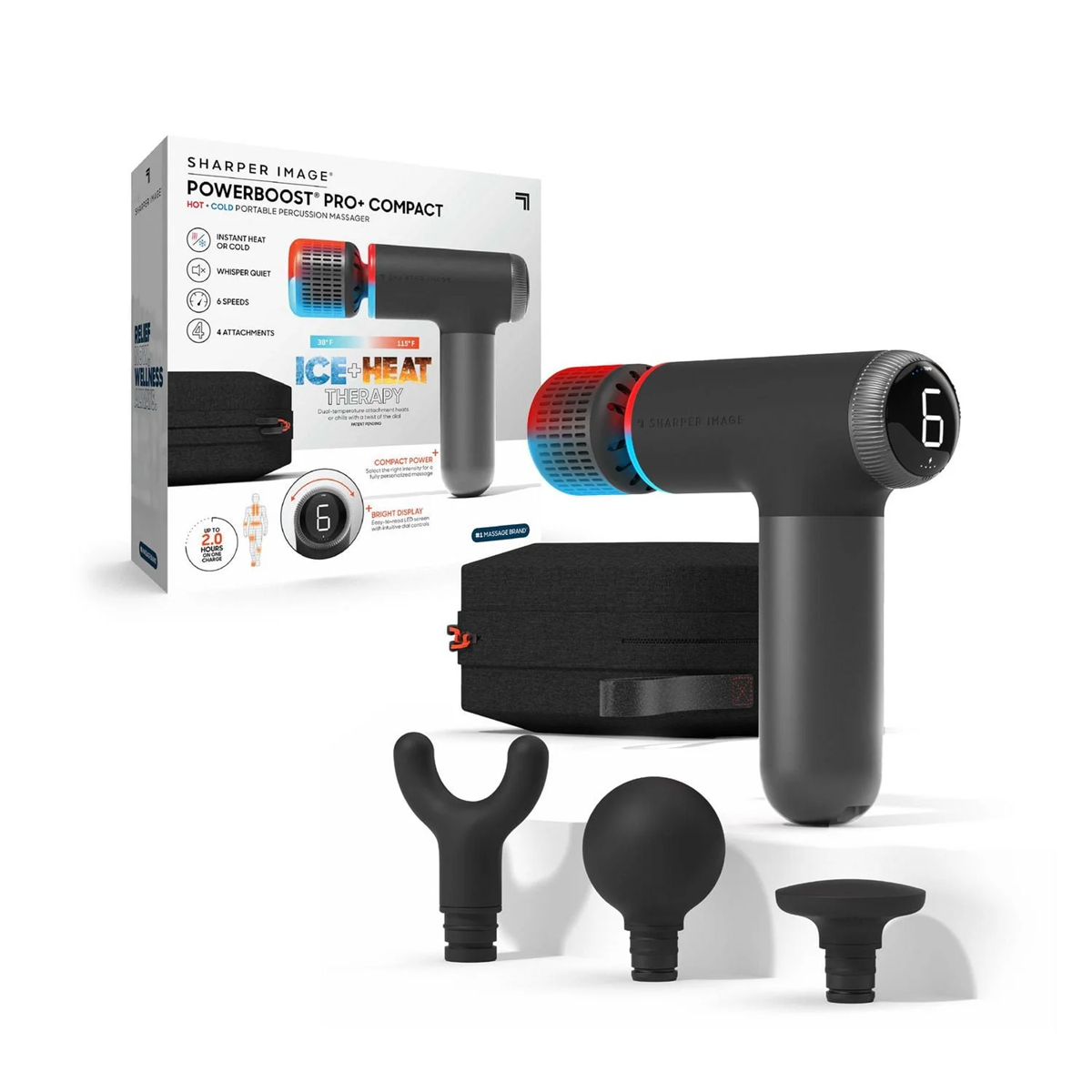 SHARPER IMAGE® POWERBOOST® PRO+ COMPACT HOT & COLD PERCUSSION MASSAGER (SLIGHTLY USED, NO BOX)
