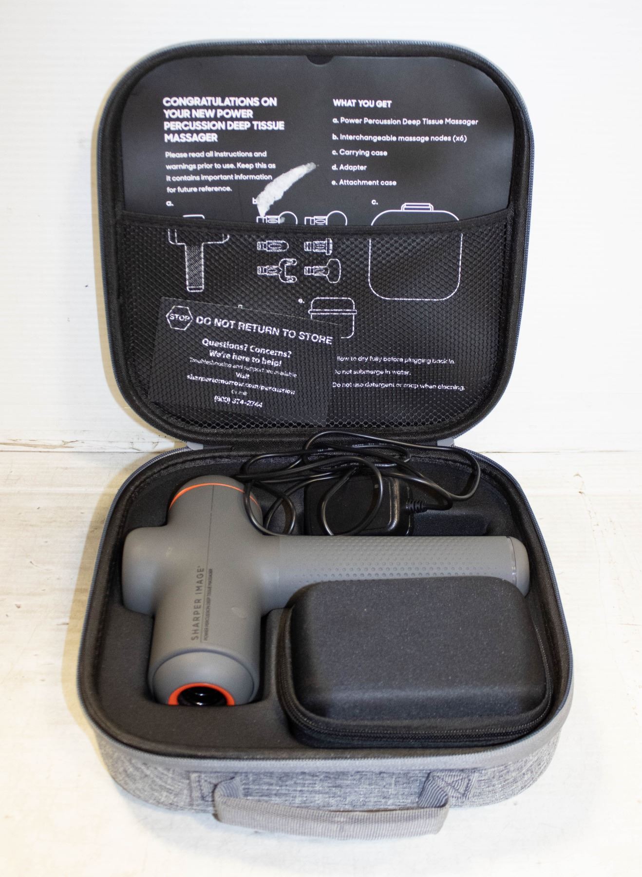 MASSAGER. POWER PERCUSSION. WITH 6 ATTACHMENTS & CARRY CASE. 4.5 HOURS ON ONE CHARGE **ALL ITEMS MUST BE REMOVED BY 5PM SATURDAY, FEBRUARY 10TH 2024. ALL REMAINING ITEMS WILL BE SUBJECT TO A $6.00 PER DAY STORAGE CHARGE. ANY ITEMS REMAINING AFTER MONDAY, FEBRUARY 26TH, 2023 WILL BE CONSIDERED FORFEITED. NO REFUNDS WILL BE ISSUED FOR FORFEITED ITEMS. TO SCHEDULE A PICK UP APPOINTMENT CLICK HERE