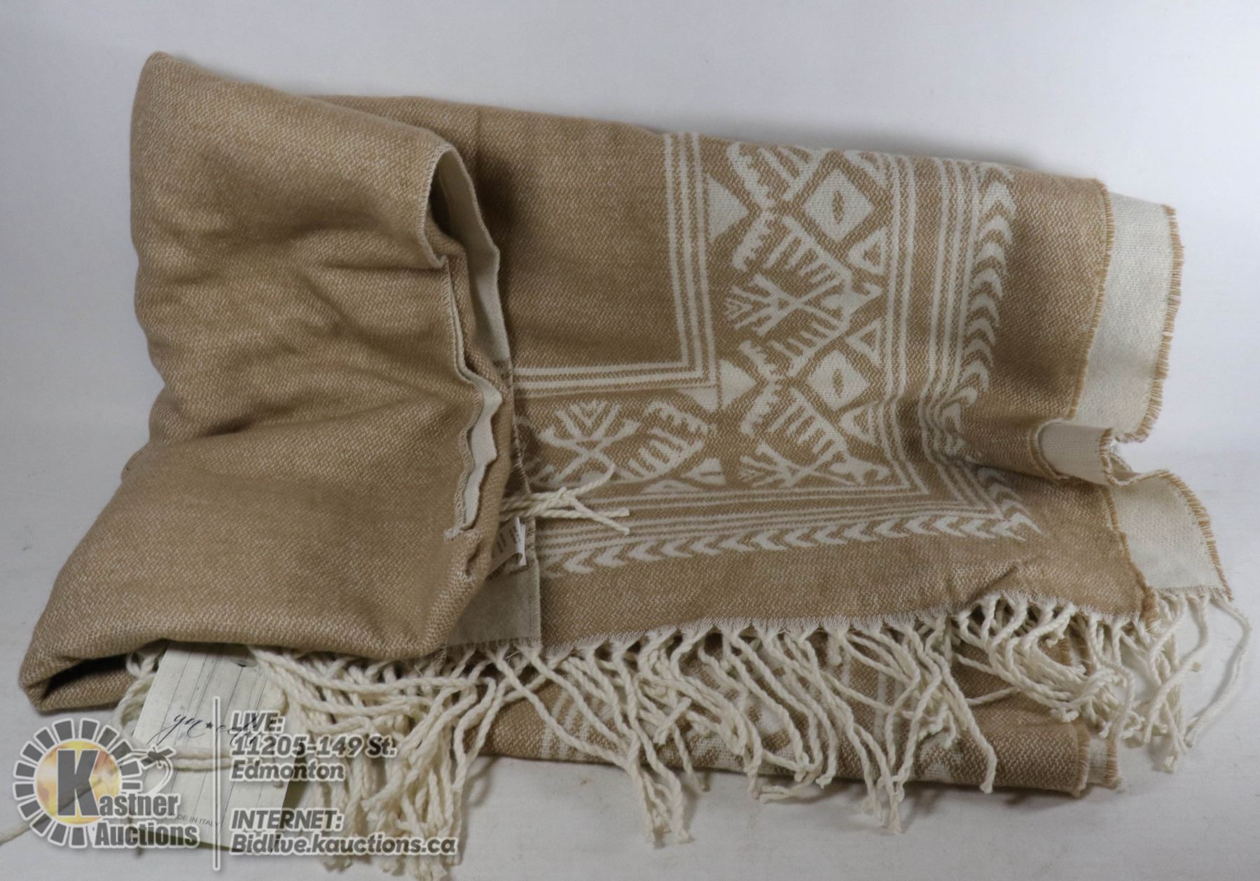 SHAWL – MADE IN ITALY “YU*EDIT” AZTEC PRINT (BEIGE IN COLOR) 100% ACRYLIC – HAND WASH