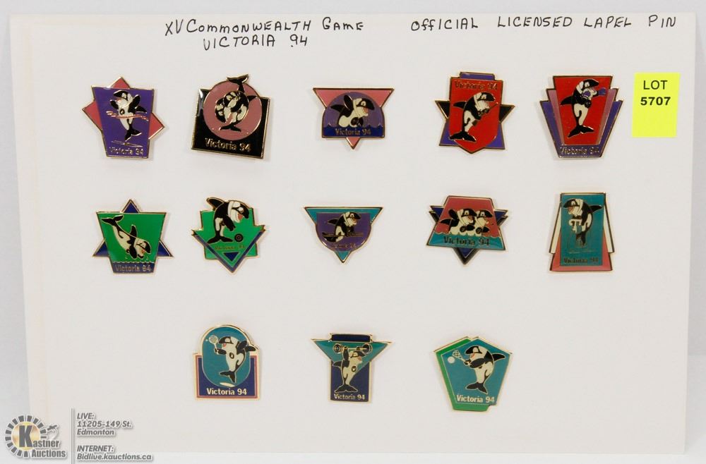 SHEET OF 13PC C.W.G. VICTORIA '94 COLLECTOR PINS