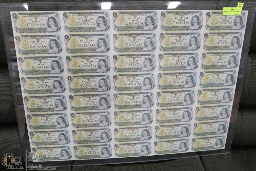 SHEET OF 1973 UNCUT CANADIAN $1.00 BILLS