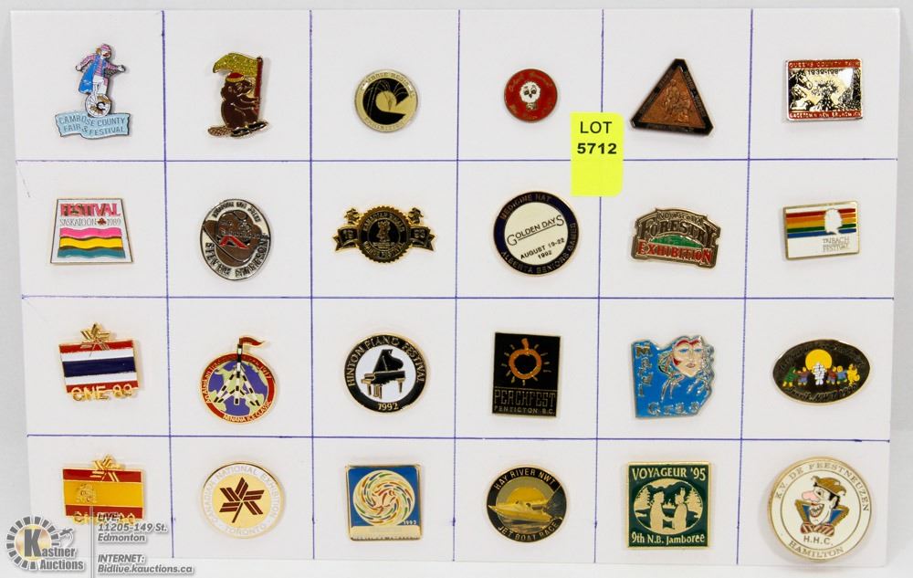 SHEET OF 24PC FAIRS FESTIVALS &MORE COLLECTOR PINS