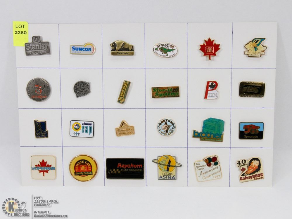 SHEET OF ASSORTED COMPANY PINS