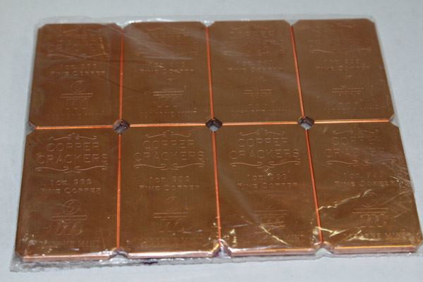 SHEET OF EIGHT 1oz .999 COPPER BARS