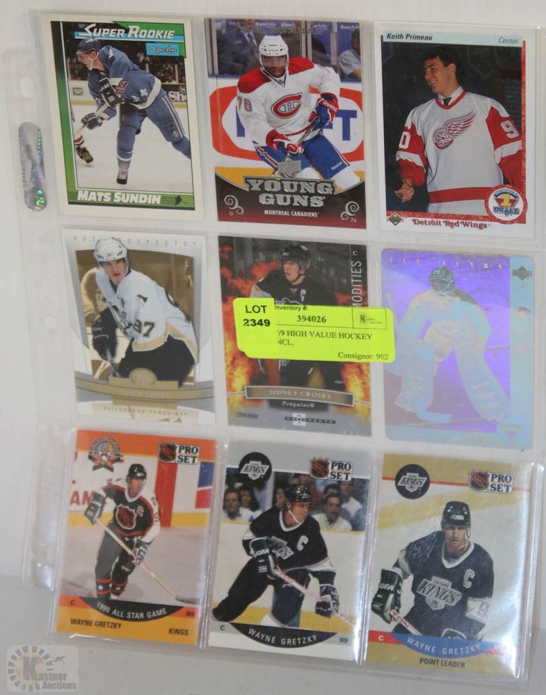 ROOKIE CARDS FOR SUBBAN, SUNDIN, CROSBY, PRIMEAU AND 3 GRETZKY CARDS