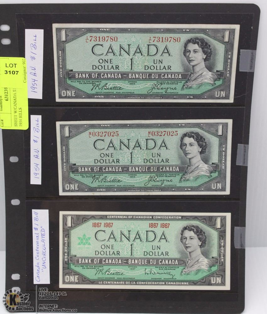 & ONE UNCIRCULATED 1967 CENTENNIAL $1 BILL