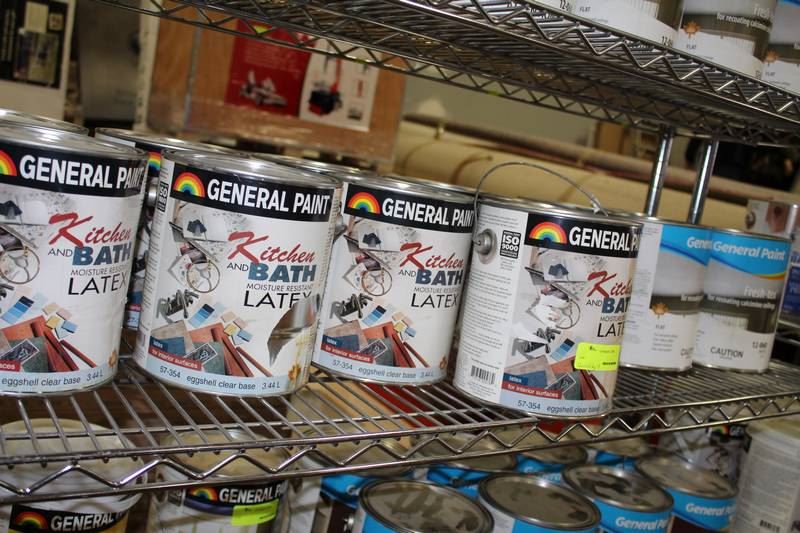 SHELF 9- 13 CANS WHITE CEILING PAINT/ EGGSHELL