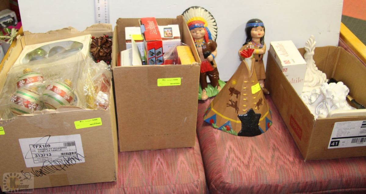 SHELF LOT OF CHRISTMAS DECOR, REMOTE CAR STARTER,