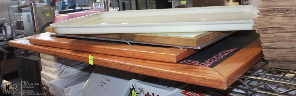 SHELF OF SIGNS, LATEX GLOVES AND NAPKINS