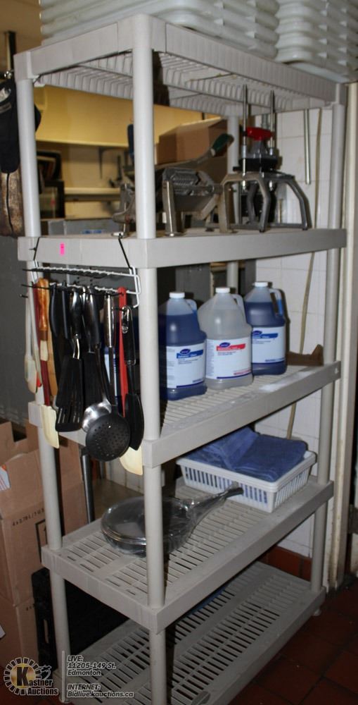 SHELF WITH CONTENTS INCL. RINSE AID, BUS PANS AND