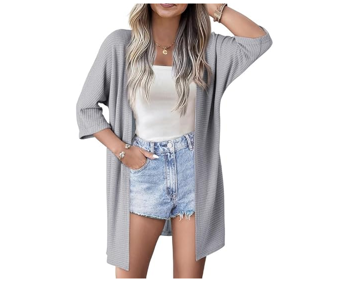 SHEWIN WOMEN'S CARDIGANS CASUAL 3/4 SHORT SLEEVE OPEN FRONT WAFFLE KNIT LIGHTWEIGHT KIMONOS CARDIGAN SWEATERS FOR WOMEN | Category: Home Goods & Decor