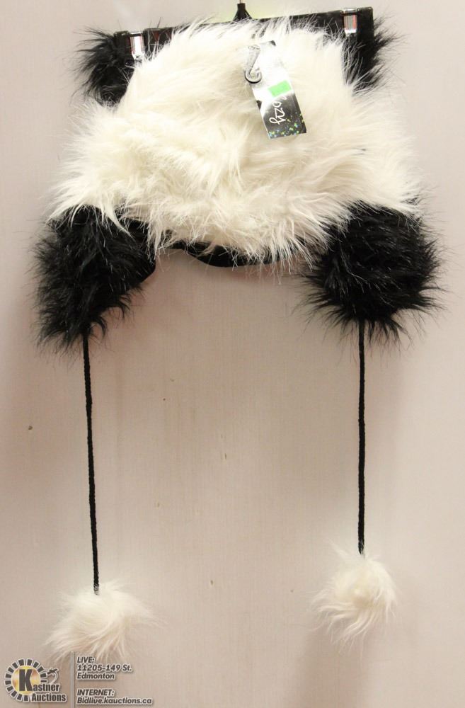 SHORT BLACK & WHITE FUZZY HAT W/ POMPOMS
