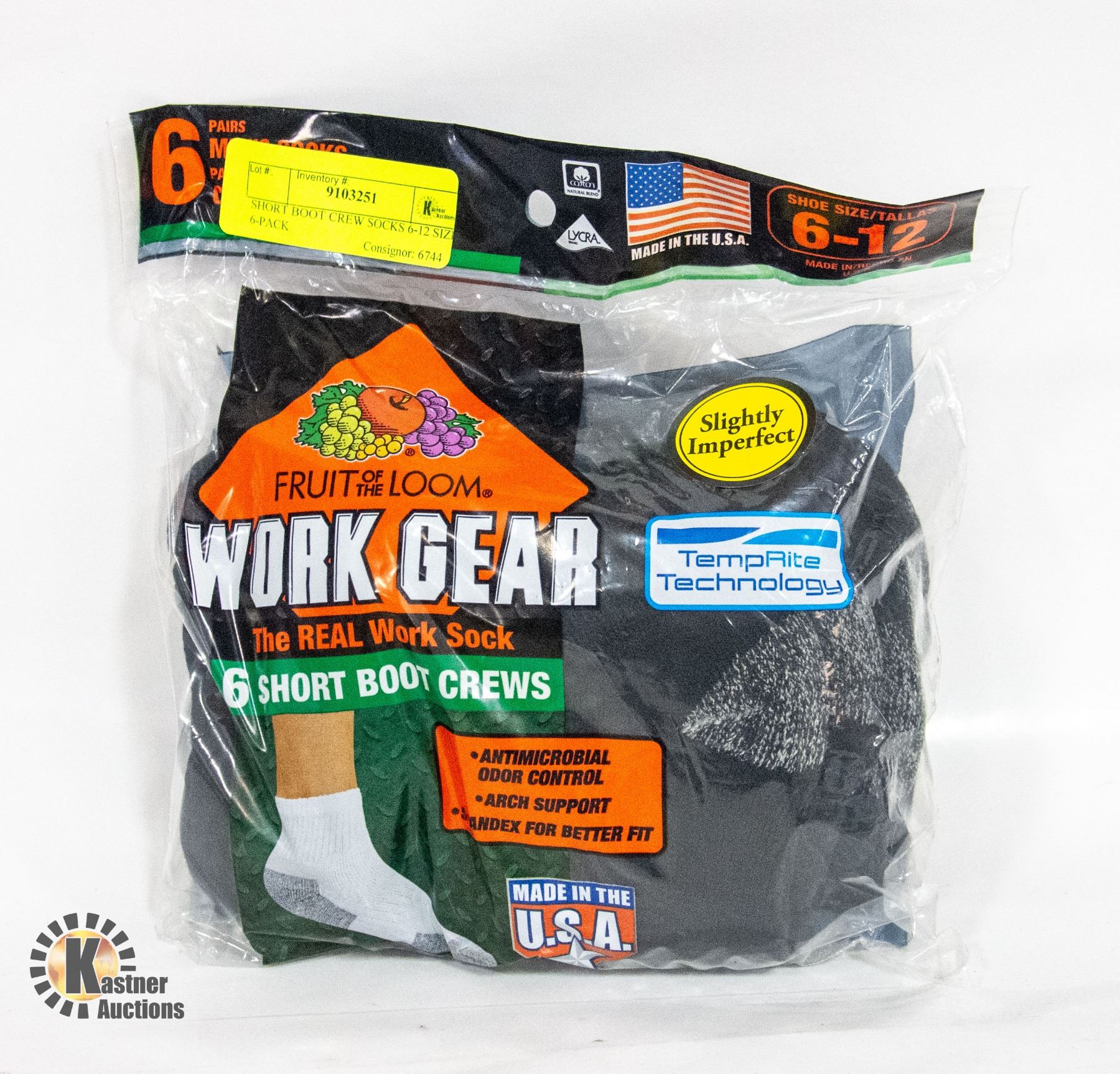 SHORT BOOT CREW SOCKS 6-12 SIZE 6-PACK