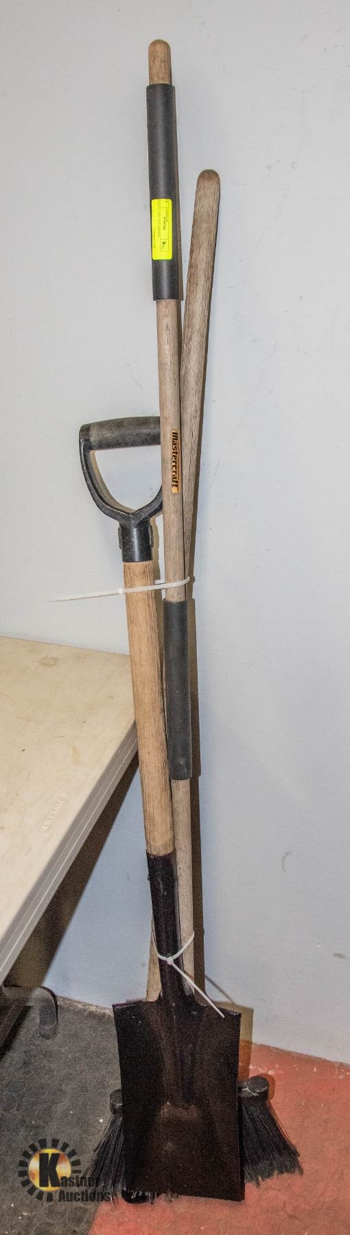 SHOVEL, GARDEN HOE AND BROOM