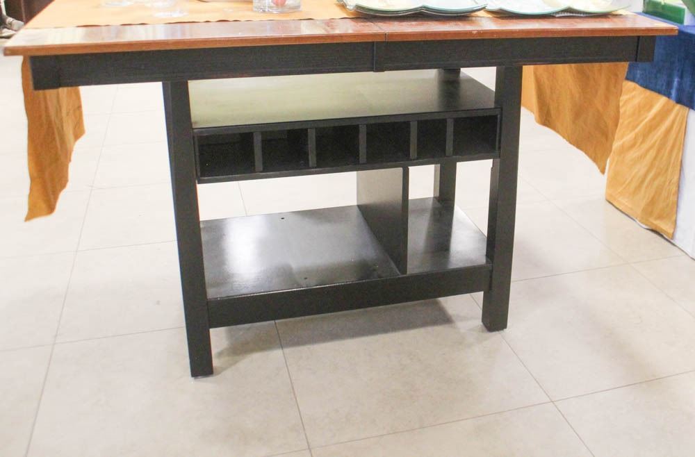 DINING TABLE W/ WINE STORAGE & BUTTERFLY LEAF UNDERNEATH. **ALL ITEMS MUST BE REMOVED BY 5PM SATURDAY, SEPTEMBER 28TH 2024. ALL REMAINING ITEMS WILL BE SUBJECT TO A $6.00 PER DAY STORAGE CHARGE. ANY ITEMS REMAINING AFTER MONDAY, OCTOBER 14TH 2024 WILL BE CONSIDERED FORFEITED. NO REFUNDS WILL BE ISSUED FOR FORFEITED ITEMS. TO SCHEDULE A PICK UP APPOINTMENT CLICK HERE
