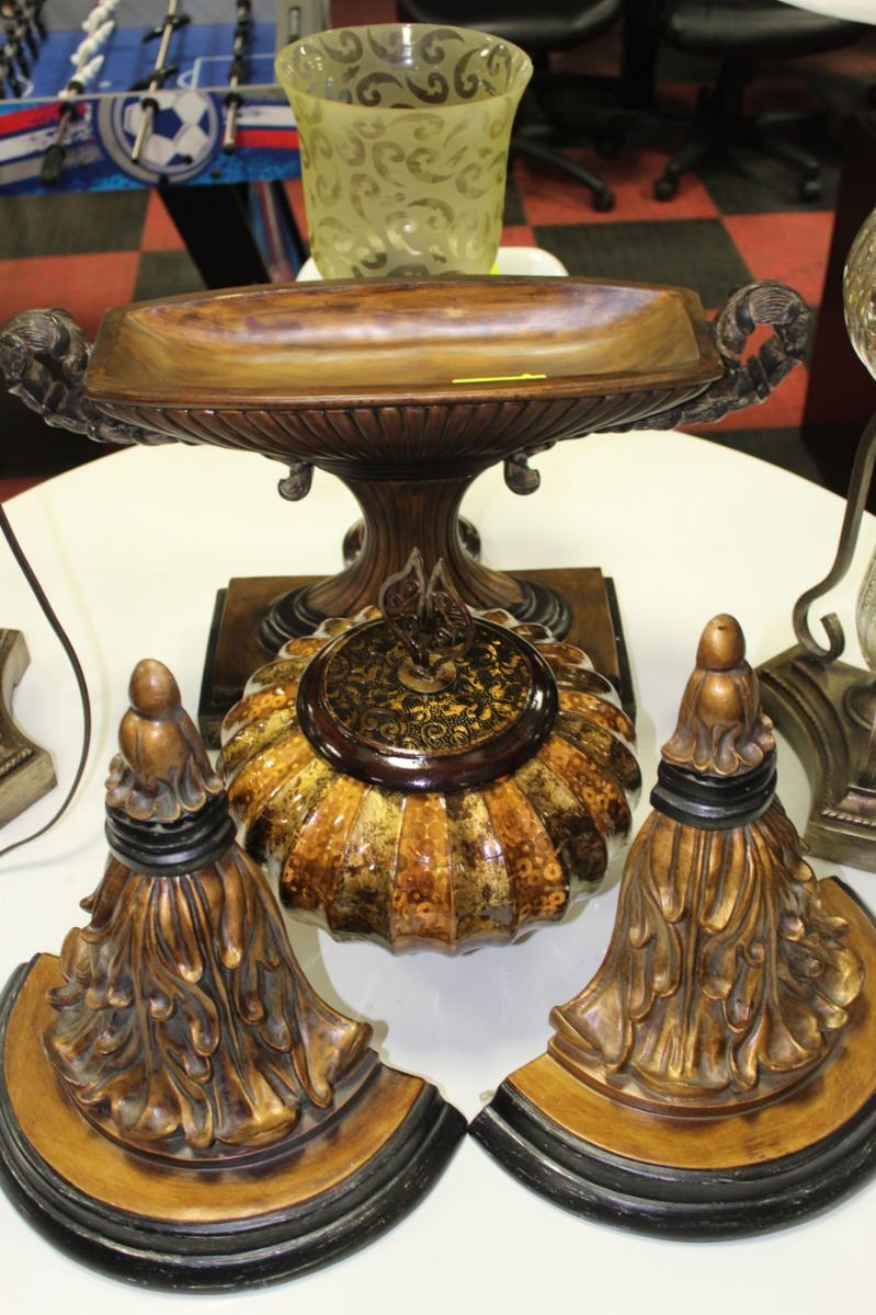 WALL SCONCES/ VASE W LID/ VASE AND CANDLE HOLDER