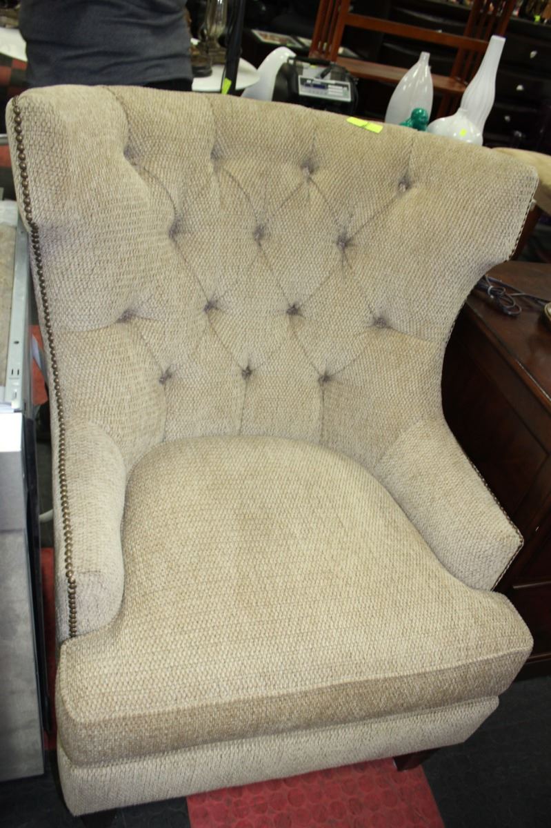SHOWHOME BEIGE FABRIC NAILHEAD PARLOUR CHAIR