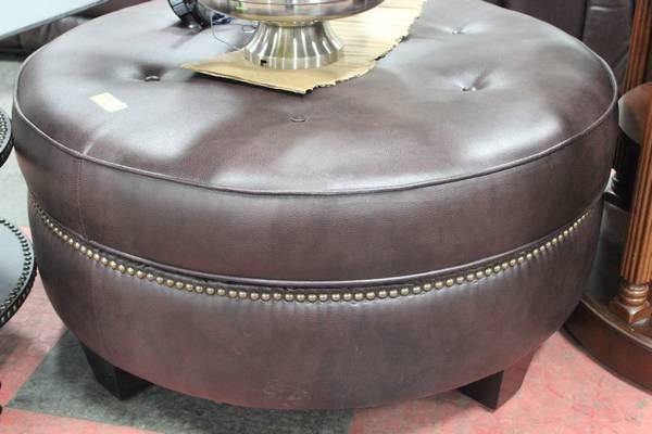 SHOWHOME ROUND LEATHERETTE OTTOMAN