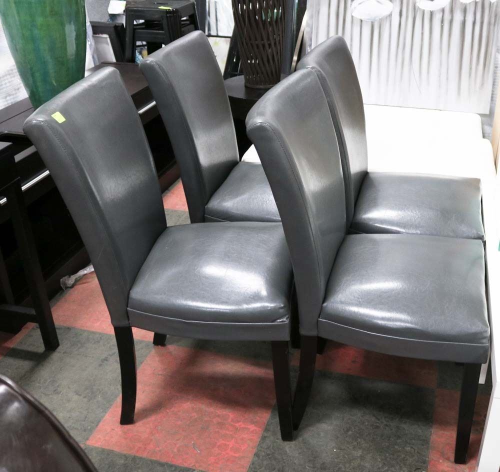 SHOWHOME SET OF 4 GREY LEATHERETTE SIDECHAIRS