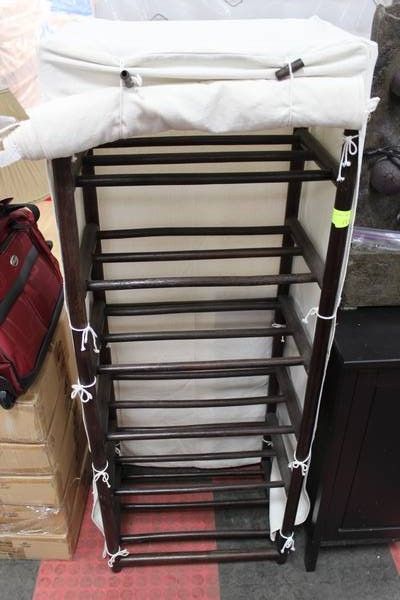 SHOWHOME WOOD AND FABRIC SHOE RACK
