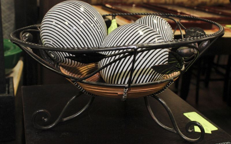SHOWHOME WROUGHT IRON AND WICKER DECORATIVE BOWL