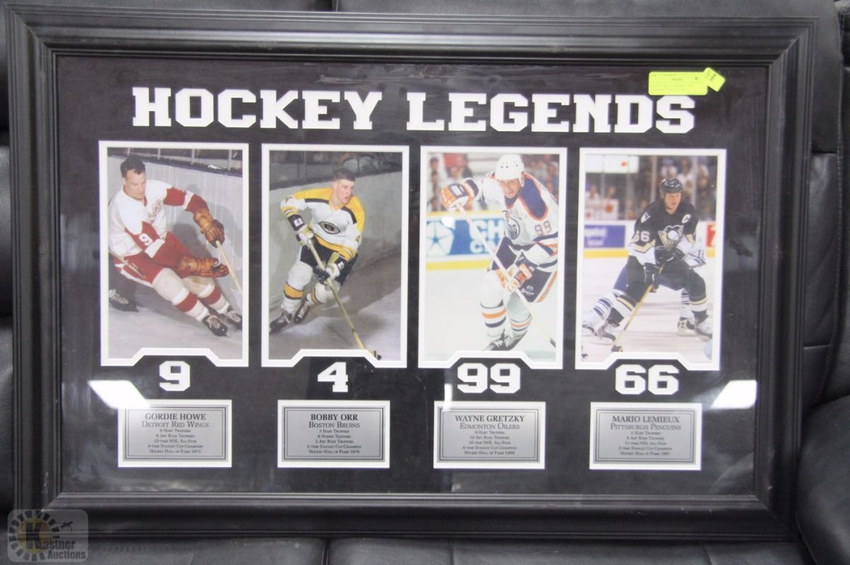 BOBBY ORR, WAYNE GRETZKY,MARIO LEMIEUX DOUBLE MATTED AND FRAMED PHOTOS 24.5"X36"