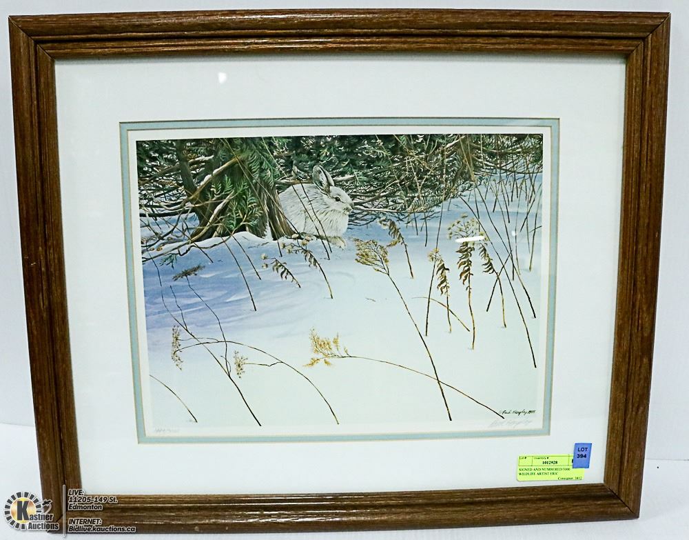 BLAIS WOLFE’S 1989 “IN THE SNOW” WITH WOOD FRAME SIZE 18.5 X 22.5