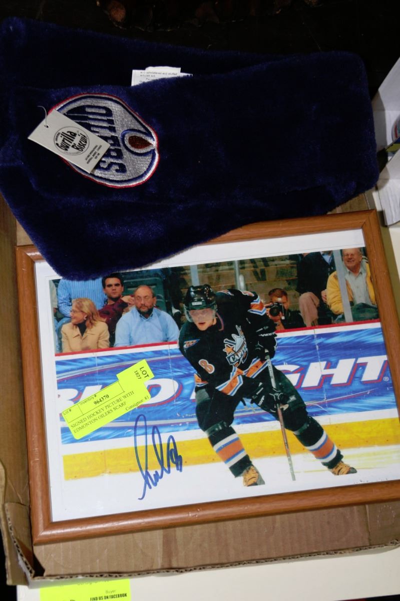 SIGNED HOCKEY PICTURE WITH EDMONTON OILERS SCARF