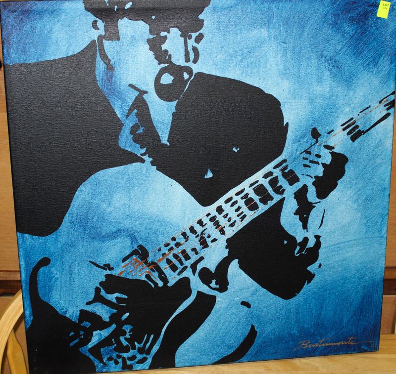SIGNED JAZZ BLACK & BLUE OIL ON CANVAS