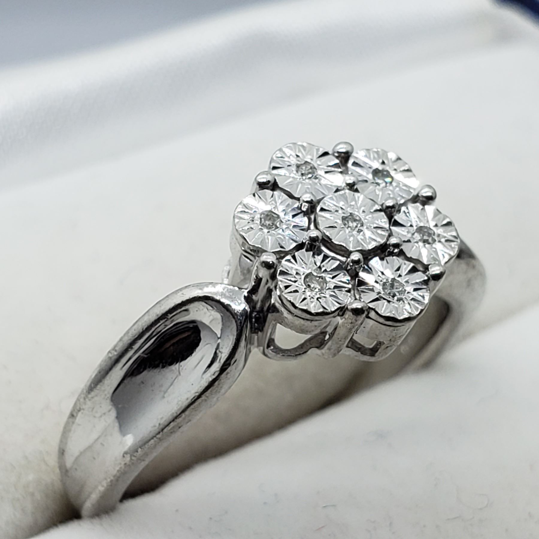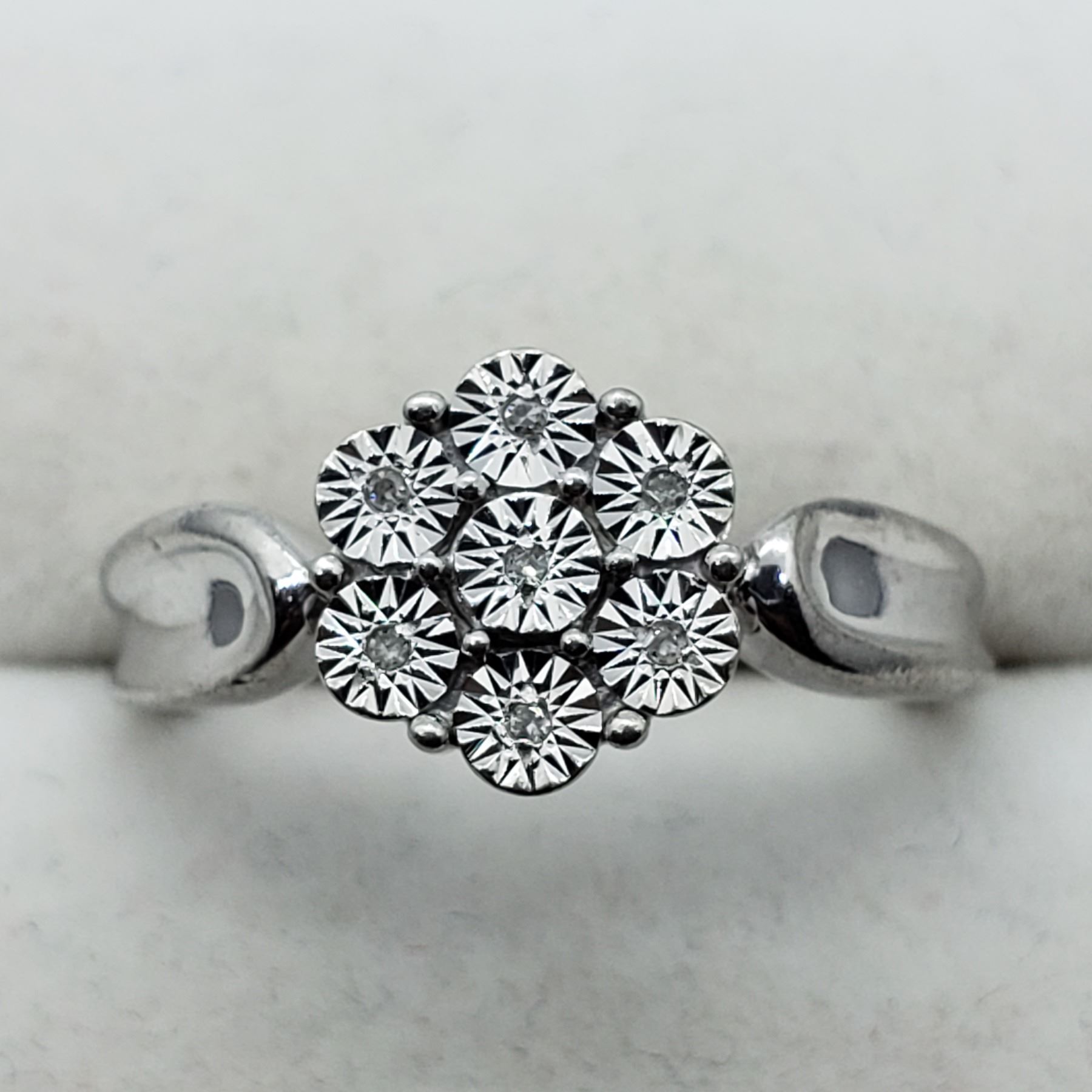 S. NO. 109 - DN49: SILVER 7 ILLUSION SET DIAMOND RING (~SIZE 7) (~WEIGHT 3.75G). MADE IN CANADA