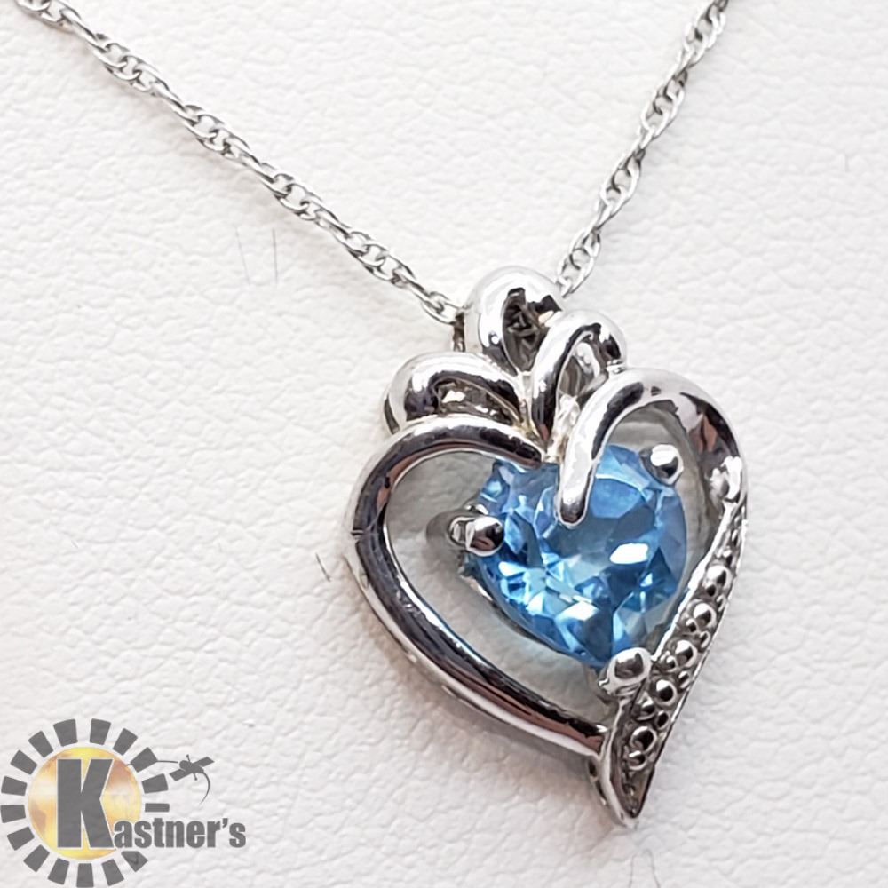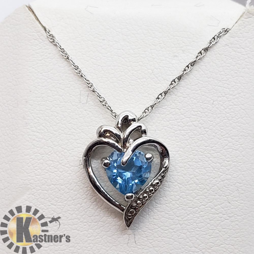 S. NO. 134 - JT70:N100 - SILVER HEART SHAPED BLUE TOPAZ PENDANT WITH CHAIN NECKLACE