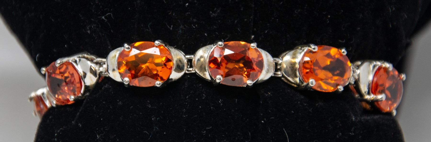SILVER BRACELET WITH ORANGE STONES, 6.75"