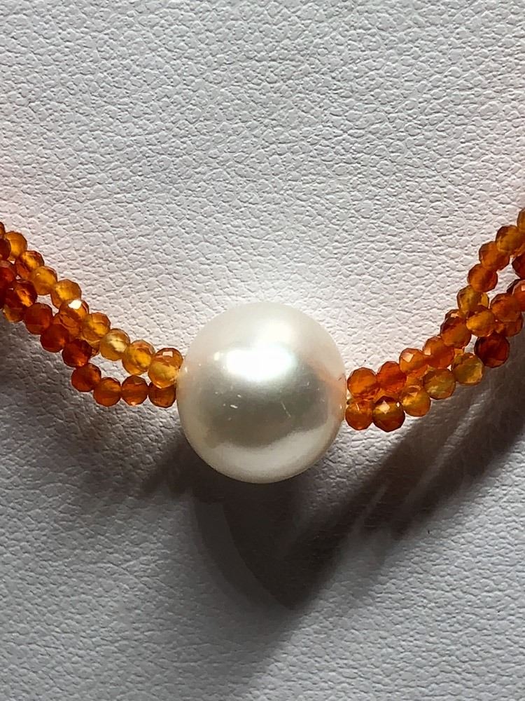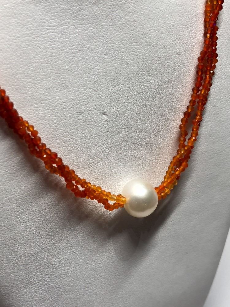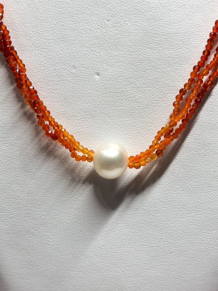 240 - JT37 - SILVER CARNELIAN FRESHWATER PEARL NECKLACE (~LENGTH 20CM) (~WEIGHT 4G). JEWELRY