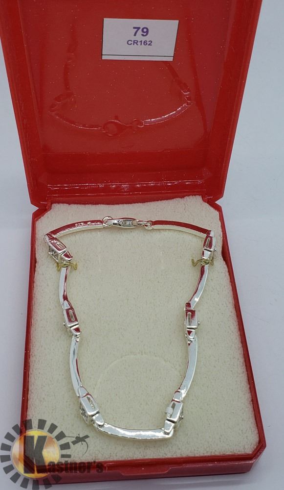 #79-CR173:B100: SILVER CUBIC ZIRCONIA BRACELET.