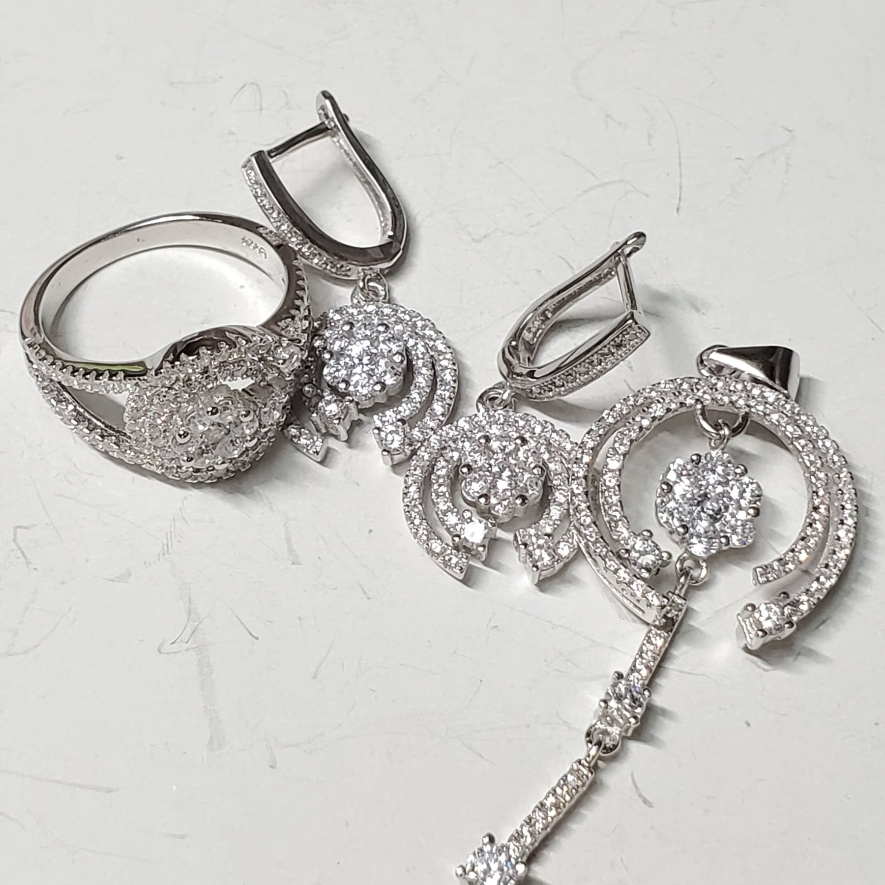 SILVER CUBIC ZIRCONIA EARRING, RING