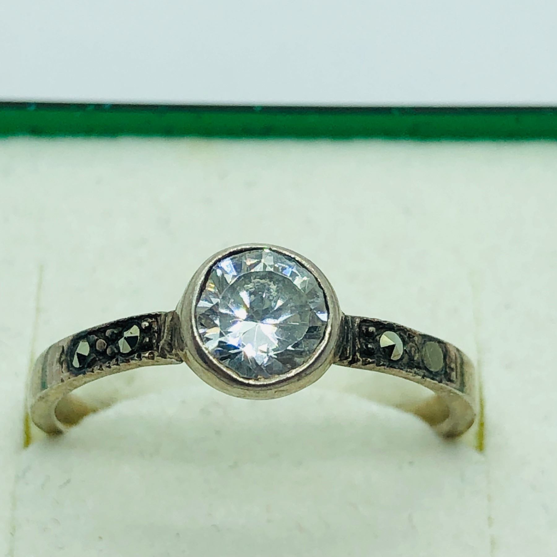 109 - CR142: CODE 2470 - R20: SILVER CUBIC ZIRCONIA MARCASITE RING