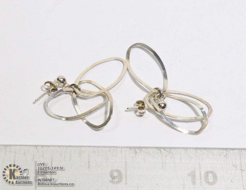 925 SILVER EARRINGS ON POSTS. 3 SILVER HOOPS HANGING FROM SILVER POST