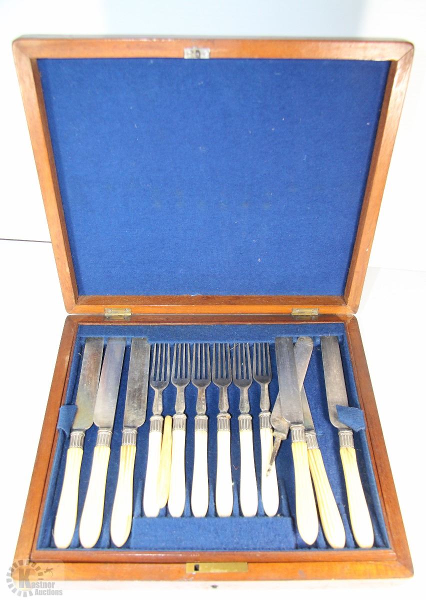SILVER FLATWARE SET WITH IVORY HANDLES