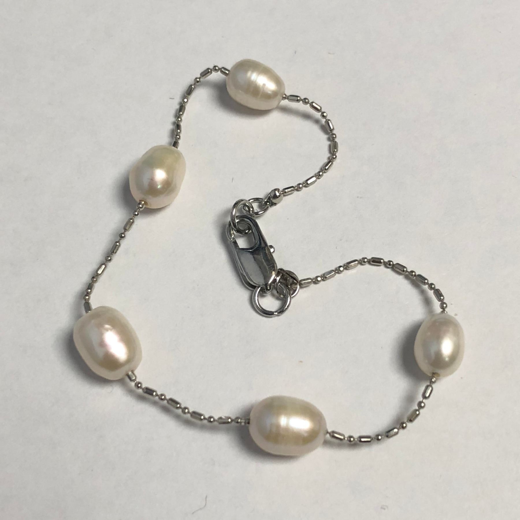 SILVER FRESHWATER PEARL W/ SILVER CLASP BRACELET. [DN58]