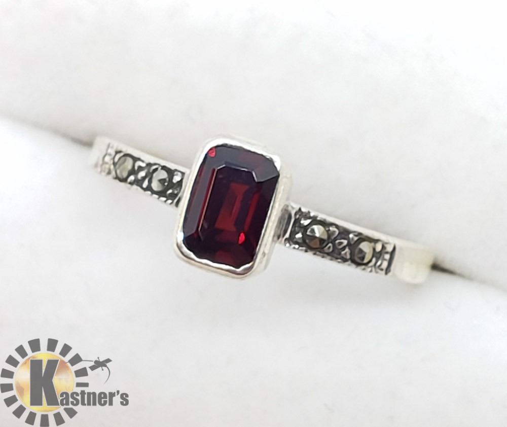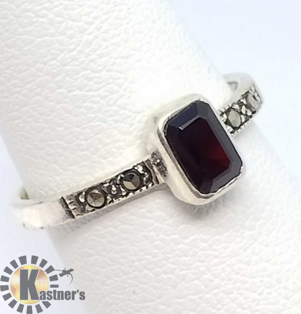 S. NO. 141 - JT70:R60 - SILVER GARNET AND MARCASITE RING