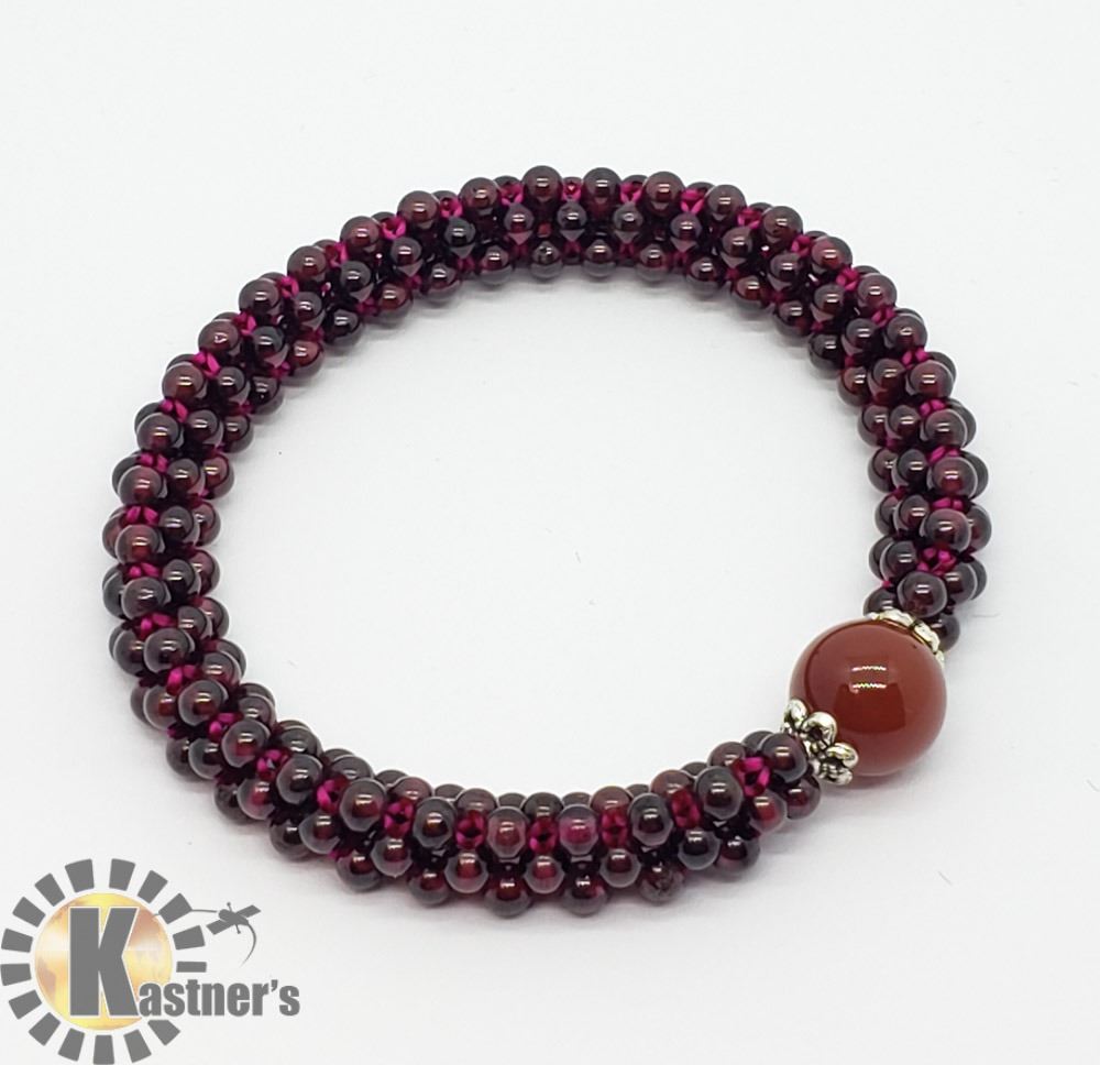 S. NO. 117 - JT70:B60 - SILVER FLEXIBLE GARNET AND RED AGATE BEAD BRACELET